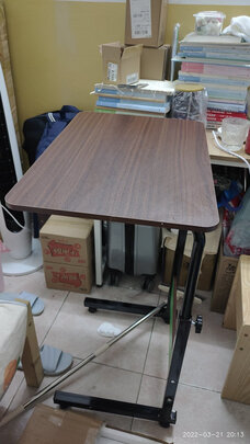这个小桌子太让我满意了,首先,材质真的没的说,木板厚实,铁架也很结实,几种固定螺丝商家都多送了一颗,以备不时之需,还有螺丝刀扳手工具也都配齐,太到位。包装也很满意,泡沫都是填充满满的,取出没有任何一点磕磕碰碰。一个人十几分钟就安装完毕,滚轮也很稳,不会摇晃。放在床边吃东西、喝茶、电脑上网之类的很完美。好评没的说!!!