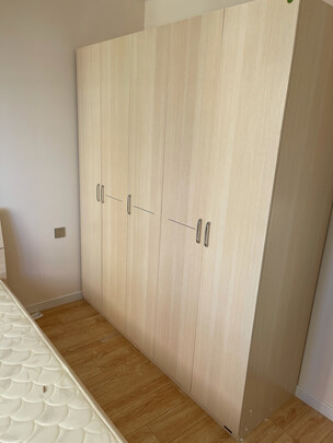 衣柜简约大气,木质材质的、做工非常精细,稳固性好,颜色也很好看,性价比很高。