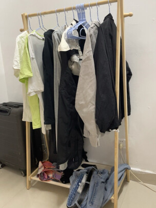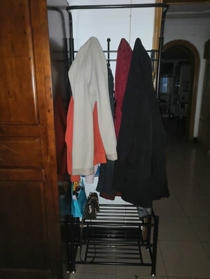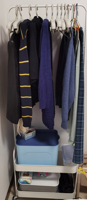 在衣柜的转角原本放花草的地方,换成了这款衣架 把平常上班回来换下的内搭毛衣之类可以挂在这里 非常省地方 样子不错,毛衣、外套可以不用放在飘窗啦
