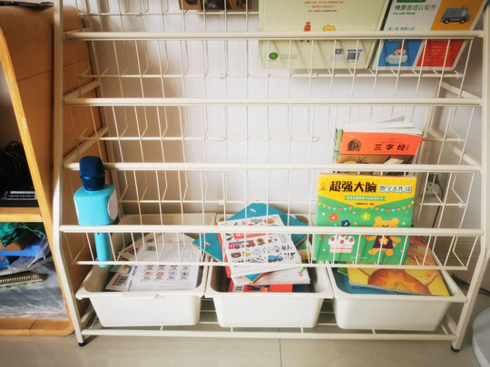 一直想入手这款书架,但是一直没有碰到合适的优惠价格,这次有活动了立马入手,质量很好,做工精细,五金配件都是如此的精致,储物量大,可以放很多书,下面还有三个储物盒,更是解决了一部分玩具的放置,京东快递很快,推荐