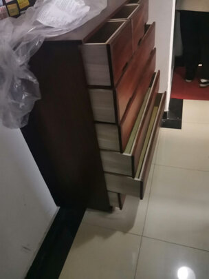 货到当天就联系卖家,下午安排师傅给装上了,产品不错,基本没什么味道,合页还是缓冲的,没想到。安装也快,拆卸包装到装好40分钟。外观样式:样子和家里比较搭配.容量大小:五斗很能放东西