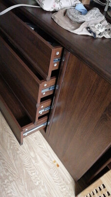 花400多买个残次品。跟家人吵了一架,抱着板子摔了一跤,自己在走廊边哭边安装。你们没有质检吗?装起来歪歪扭扭,抽屉板子也歪的。想想人生也就这么回事,哪有完美的,就像这些板子一样凑合活吧,活哪天算哪天吧。