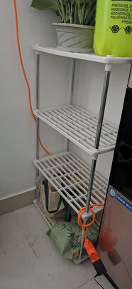这个置物架看起来还不错,放在墙角边可以收纳好多东西,看起来也很结实的,材质也不错