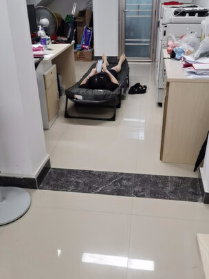 中午办公室休息用,很好,可以收起,很方便,不占地方,铁架子也很结实,有薄垫子。躺上也不会嘎吱嘎吱响。颜值也高。不错。