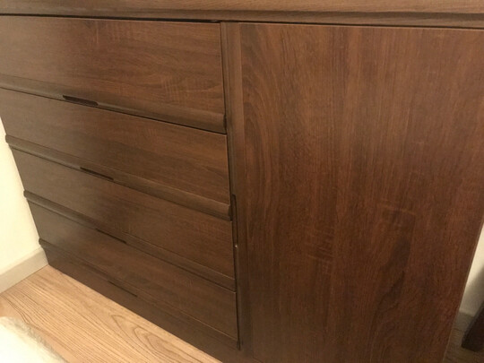 送货员走了之后发现柜门有一条磨痕,也不知是原有的还是组装时磨的,不明显也就懒得理论了
