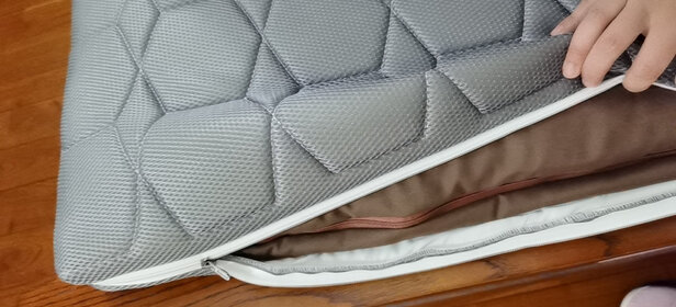 垫子不错,拿出来后,不像别的品牌的床垫用薄膜包装的,而是一层无纺布,既透气又挡灰,很人性化