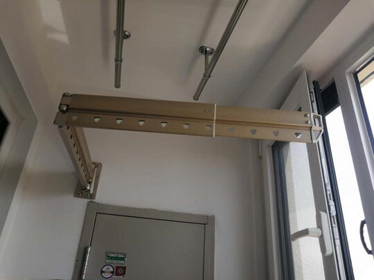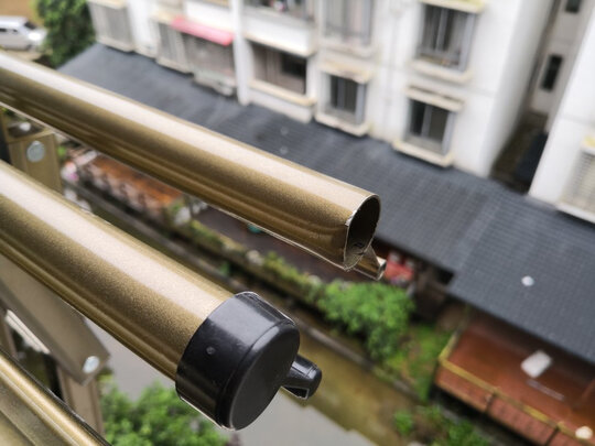 家里的升降衣架也是买的金贵夫人的,这家的质量蛮好的,所以这次阳台外面的伸缩衣架还是买他家的,等老公有空的时候自己安装,特地买了四杆的,以后天气好时衣服就可以晒出去了,晒被子也方便,看了杆子比朋友家买的实体店的还要结实,管子中间有加强筋的,真好