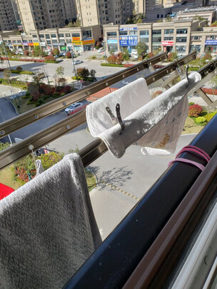 很好,方便晒被子。特意拿了一张棉被过来晒,试下晾衣杆质量如何,结果让人满意。不错不错