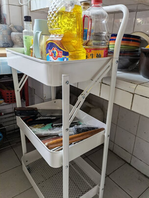 厨房各种菜呀什么的都可以收纳到这里,真的厨房整起来了置物架非常好看,也很结实,这个真的值得推荐给大家,还可以移动,厨房再也不乱了。