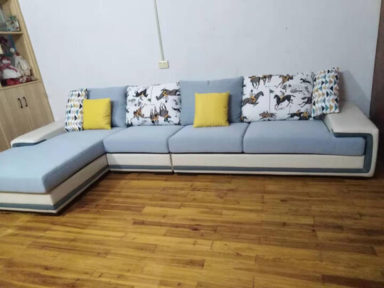 第一次在京东买这么大的沙发,因为信任京东。;收到货后还会上门安装,真的不错。沙发用的材质挺好,质量也好,也没有什么味道,坐着躺着舒服,清洁也很方便!