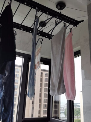 第一次在网上买凉衣架,简洁大方,两边可以挂30件衣服,中间还能晒晒毛巾,鞋子,抱枕,上下方便。物流快,安装师傅也很好,比较满意的一次购物。