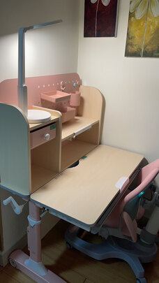 学习桌还没到,安装师傅就打电话给我预约安装时间了,服务非常周到。打开箱子后直接惊艳了,比我在商场看到的爱果乐的那款三千多的还要好,并且还大。尤其是椅子比我朋友家黑白调的那款一千多质感还好,安装师傅说这个价钱买的太值了,这质量,用到高中没问题。。安装完孩子迫不及待的坐上来画画,孩子说是她喜欢的公主粉,孩子喜欢,我也很高兴。一个姐妹想给她家孩子买爱果乐的那款,我推荐这款给她。