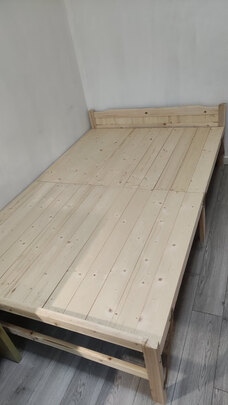 架子床很方便,直接就能打开,中间的脚有点短自己垫了硬纸壳进去。非常满意