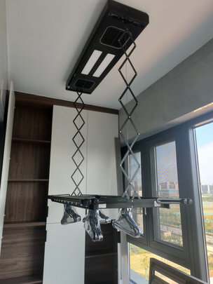 电动晾衣架比手动晾衣架好在天花板上没有钢丝印,智能化高,外观也比较漂亮,安装师傅认真负责