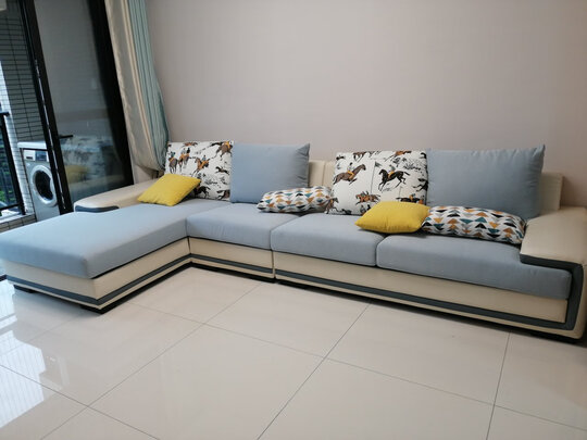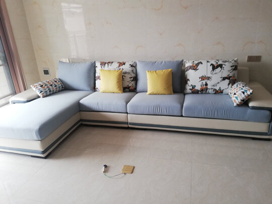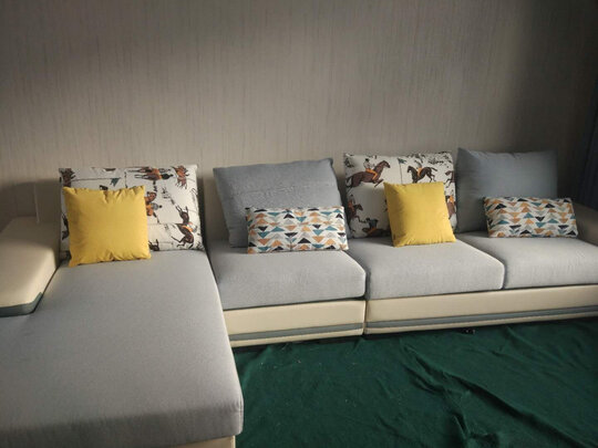 沙发已经坐了一段时间 各方面都很满意 颜色简单大方 坐上去软硬适用 美没有味道 孩子整天在上边滚来滚去 做工挺很仔细 没有任何瑕疵 包装很严实 客服也很有耐心 推荐购买哦