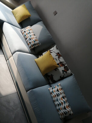 风格款式:简单,大方,也很大气,;适用户型:中等户型;材质特点:棉麻面料,挺舒适的,抱拯是柔布面料,做工精细;舒适程度:座感不错,软硬适中,是我想要的感觉;售后服务:配送安装师傅态度好,提前打了电话通知送货。后面迟到了一个多小时,一来就说不好意思,让久等了,包装也很严实,开始还担心会磕碰坏,物流也给为,以为要等一个月,没想到那么快到货,