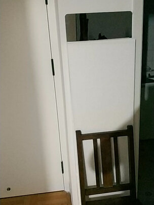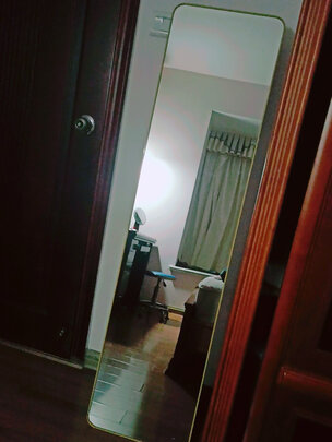 选了好久了,终于认定了这款。销量好,评论普遍反应不错。上午下单,傍晚就送到了!京东快递小哥帮忙打开验了货,完全没问题才走。包装很严实稳妥,一共两层纸箱,里面的纸箱里还有个木框,镜子就妥妥的放在木框里,这包装真是太用心了。然后镜子也很高,尺寸合适,镜面平滑不失真,圆角做得也完美,真是无可挑剔。支持粘贴壁挂两种安装方式,我们选择了壁挂,老公和我通力合作搞定!早就想有个大穿衣镜,终于实现了,呵呵,高兴极了!