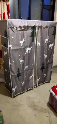衣柜坏了,在京东看到了这款布衣柜,早上下单下午就送到了,很给力。衣柜容量很大,颜色也很素雅,拿回来试着装,用了两个小时装好了,放在房子心里特被舒服。