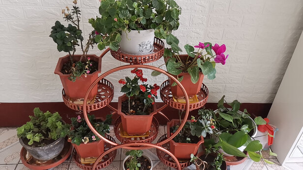 很惊艳,没想到会这么好,又加购了一个!需要花架的朋友可以放心加购。下面有轮子,移动很方便,有三个颜色,白色,青铜色,红铜色,妈妈选了红铜色,收到确实不错,很好看,小盆的花摆上很好看,不用地上散落着了。