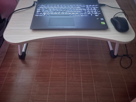 物流迅速,包装完好。店家已经帮组装好,打开就可以使用,非常方便。不使用时两边桌腿一收靠墙一放不占地。边缘光滑不会伤手。桌面也够大,图中是15.6的本本,供大家参考。