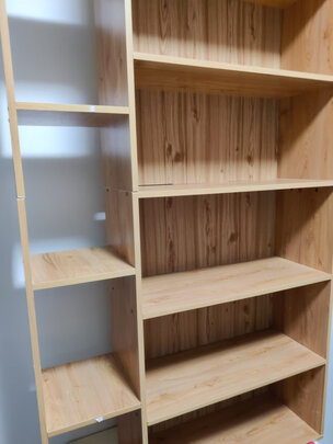 一百多买了这样的书架,价格还算便宜,就是味道有点大,要放上几天才能用,如果是新装修的房子还好。京东的快递员也尽职尽责,送货上门,服务很棒。