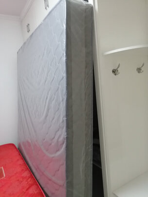 电梯装不下,还好只是5楼,和快递员两个人一起走楼梯抬上来,很重,大件货还是有两个快递员才好,床垫硬度适中,就差床单被子了