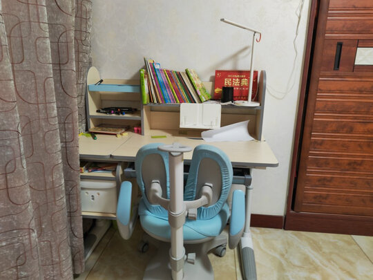 很好,孩子喜欢,坐上去就不愿下来了,超级舒服,用起来也方便,占空间也不大,对比了很多家,最后买了这款黑白调的,没有让我失望哦,颜色搭配也好看,店家还贴心的赠送了台灯和椅子套,真是解决了我的大问题,已经推荐给孩子的同学了。