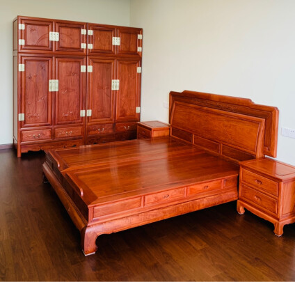 床是缅甸花梨木的大气高档,木质厚实稳固,做工精细特别精致美观,价格实惠。