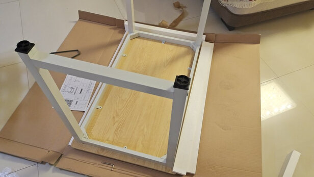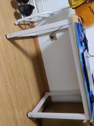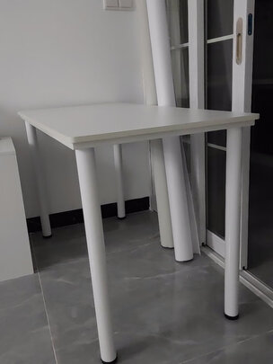 安装简单,女生可能力气不太够,螺丝可能拧不太紧,但不故意摇就不晃,准备等老爹回来再帮忙。桌面板材光滑厚实,很满意。
