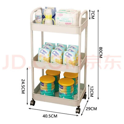 - 商品名称:唯良 厨房置物架落地可移动美容院小推车零食架多功能蔬菜水果收纳架子 4层时尚白【双把手+带轮子】