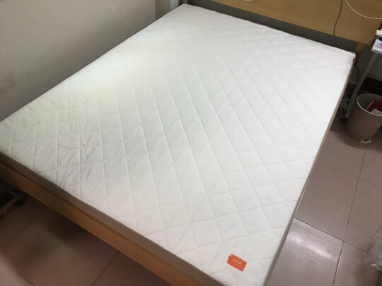 纯白纯白的床垫,手工做了床垫罩,感觉很薄不厚,标签简单,下线价格比线上贵1000多 是不是一分价钱一分货,还得等待时间检验
