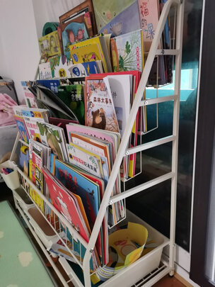 这个书架质量很好哦,本来乱糟糟的这么整理一下很好,很整齐,也让宝宝养成好习惯自己收拾玩具书籍,感觉很值这个价位。;有五层,下面还有一层收纳玩具,容量很大,方便宝宝取放,值得推荐。