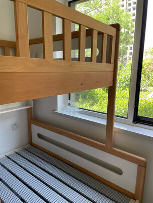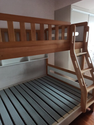 床非常稳,成人在上铺活动也不会晃。只有第一天木材的味道重一些,之后就感觉不到异味了。表面光滑手感舒适,总体很满意。