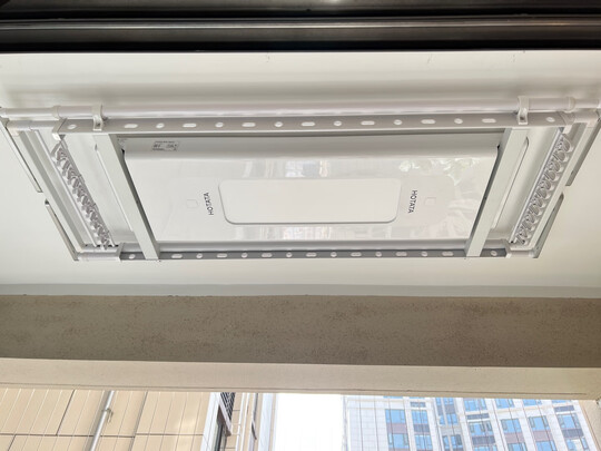 外观很大气而且挺智能晾衣架,白色的晾衣架正好和阳台的风格很搭,中间的大照明灯也挺亮的,上升下降的声音也挺静的,安装师傅安装也熟练,不一会就装好了,值得推荐。