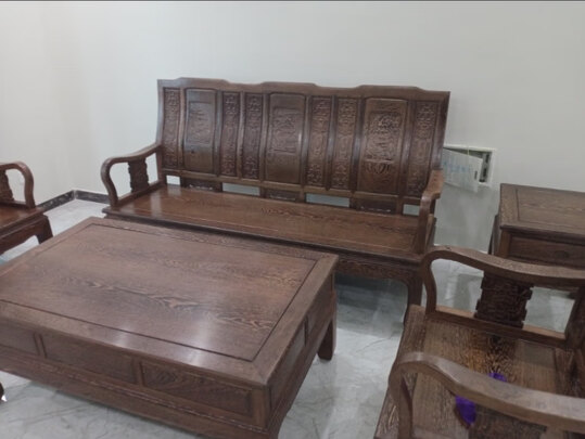 沙发收到后,确实让我很惊喜,比图片描述的要更好看一些。坐起来很舒服,靠背的雕花也很漂亮,朋友们都说很高档