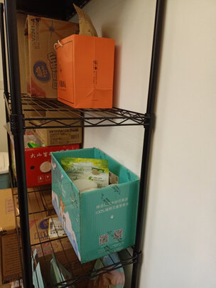 外观样式:简单易装,收纳的利器,家里的杂物可以好好规整了。;商品质量:最下边一格放了三袋米,两罐油,架子有点弯,不过没什么大问题。;配送服务:京东的物流速度还是可以的