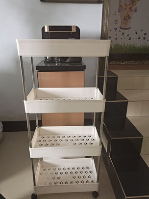 厨房里买了这个放菜架子之后,整洁多了。之前买了一点菜总是放在地上,显得很乱。现在买了这个之后,生活需要的蔬菜食品都可以往上放啦!我个人认为上面还可以加个两三层最好。