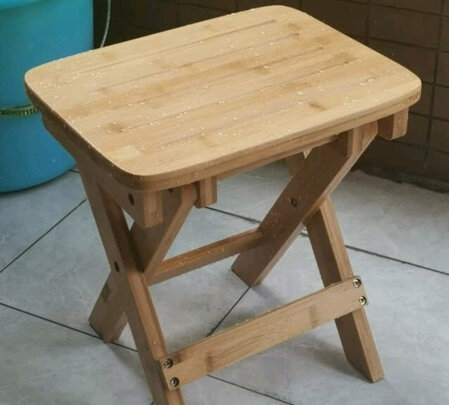 这款折叠竹凳挺好,方便结实,刚到有点油漆味,放阳台几天就好了。