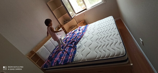 床垫很柔软静音,有一股淡淡的乳胶味 ,比我以前的老床垫薄了一点,放在榻榻米床上刚刚好,睡了一个星期了,前两天觉得偏软了,现在已经适应了。后面不塌陷就完美了,毕竟价格很便宜。送装的师傅也很好,送到5楼没有电梯。