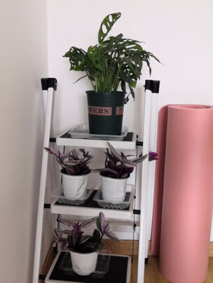 三步梯很适合家用,收纳方便还不占地方,别看它体轻,可稳定性丶承重能力一点都不含糊...闲着也是闲着,放墙角当花架也很不错?