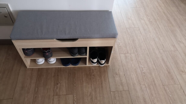 既舒服又好看,质量没得说,真的很实用,是实木的,也很好组装,小小的也不占地方,进门有个坐的地方给宝宝换鞋放鞋,挺不错的