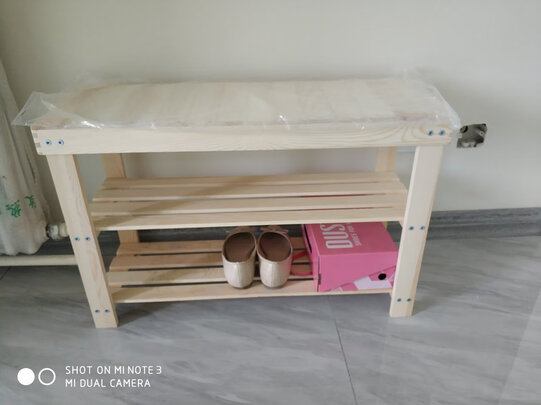 尺寸刚刚好,坐上去也很稳固,原木的看着挺舒服,是木头的味道,并排可以放三双鞋,好评!