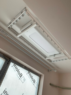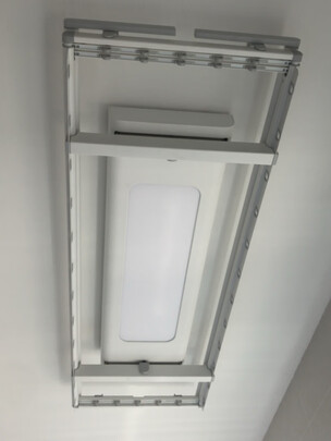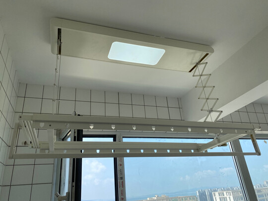 这款晾衣架很精致,简单,大方,还自带顶灯,加长杆晾床单很方便。