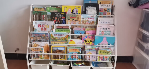 种草这个书架好久了,总算等到合适的价格入手。包装十分用心,安装也简单,细节很细致,五金也很好。主要是能展示书娃想要哪本拿哪本,还可以收纳玩具,简直很??