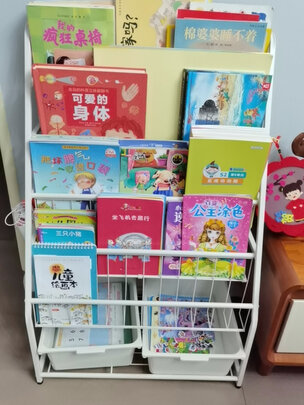 尺寸大小:可以装很多很多书,方便小孩随手就可以拿着看书;坚固程度:结实牢靠,;产品材质:铁质,感觉特别满意;其他特色:不占地方,收纳简单,宝宝的玩具一些小东西可以放到下面的盒子里面