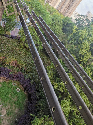 快递运输快的,包装完好,产品质量看着也很好,关键价格便宜330+50安装费(一倍价格的好太太看用料都不如金贵夫人),外径2.9M,内径2.7M,晒被子够宽啦,满意!