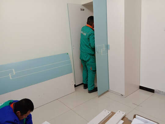 师傅送货上门,工作细致安装到位,柜子简单大方,没有异味。非常好!
