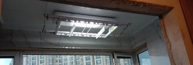 看了很久的晾衣架 本来想买小米的 综合看了一下 还是选了京造 小米的能语音控制 这点我很喜欢 京造不能连接小爱同学进行语音控制 但是综合下来感觉京造的更结实 赶上活动买 性价比更高;因为个人觉得烘干杀菌对我来说不是那么实用 所以就选了一个基础款 能升降照明就够了?;到货安装以后感觉颜值挺高的 我喜欢简单款式的 并且自带的灯也很亮;本来看评价有不少差评 都不是说晾衣架本身质量问题 是说安装的 但是我给师傅约定时间人家就过来了 并且非常nice 安装的挺快的 总之必须好评