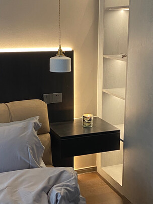 床架都是实木的,没有味道,安排的安装师傅很好,中途有些小插曲,客服的回复很快,摆上床垫很好看,跟卧室很搭。