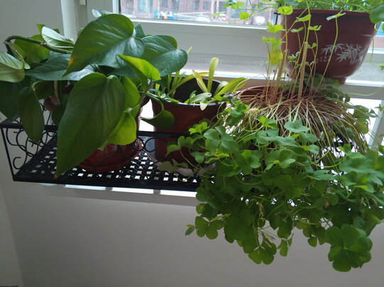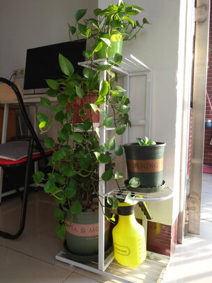 这款小花盆架,没有看起来那么高,总共可以放五六盆花,如果每一盆之间的间隔能够再高一些就更好了,安装起来还是比较简单的,我和孩子安装大概十来分钟就完成了,感觉还是比较结实的。